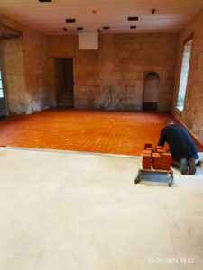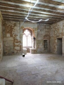 Après une relative trêve estivale travaux ont repris , tous les corps de métier sont présents en ce 23 septembre et s’activent dans tous les espaces. La vitre de protection du futur vitrail est posé, et celui-ci sera installé fin octobre. Au deuxième étage les chambres restent à meubler pour pouvoir accueillir les premiers retraitants! la moquette de protection sera enlevé après  l achèvement des travaux.